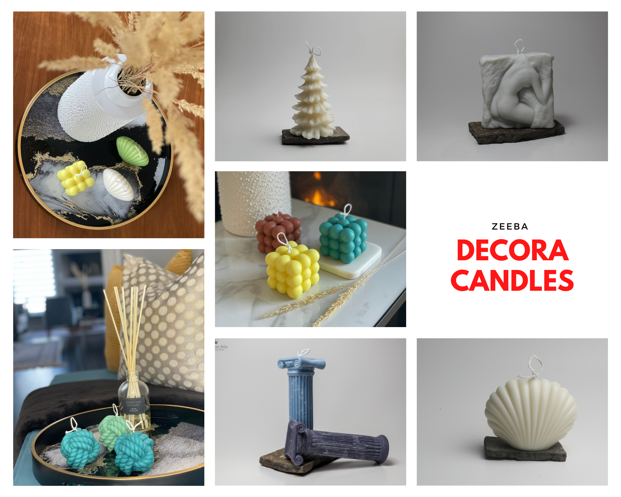 Decora candles from Zeeba Fine Arts are the perfect addition to any home decor. Handcrafted using 100% natural wax and available in a range of colors and sizes, these candles will add warmth and elegance to any room. The Decora collection features container candles and pillar candles for a sophisticated and inviting ambiance.